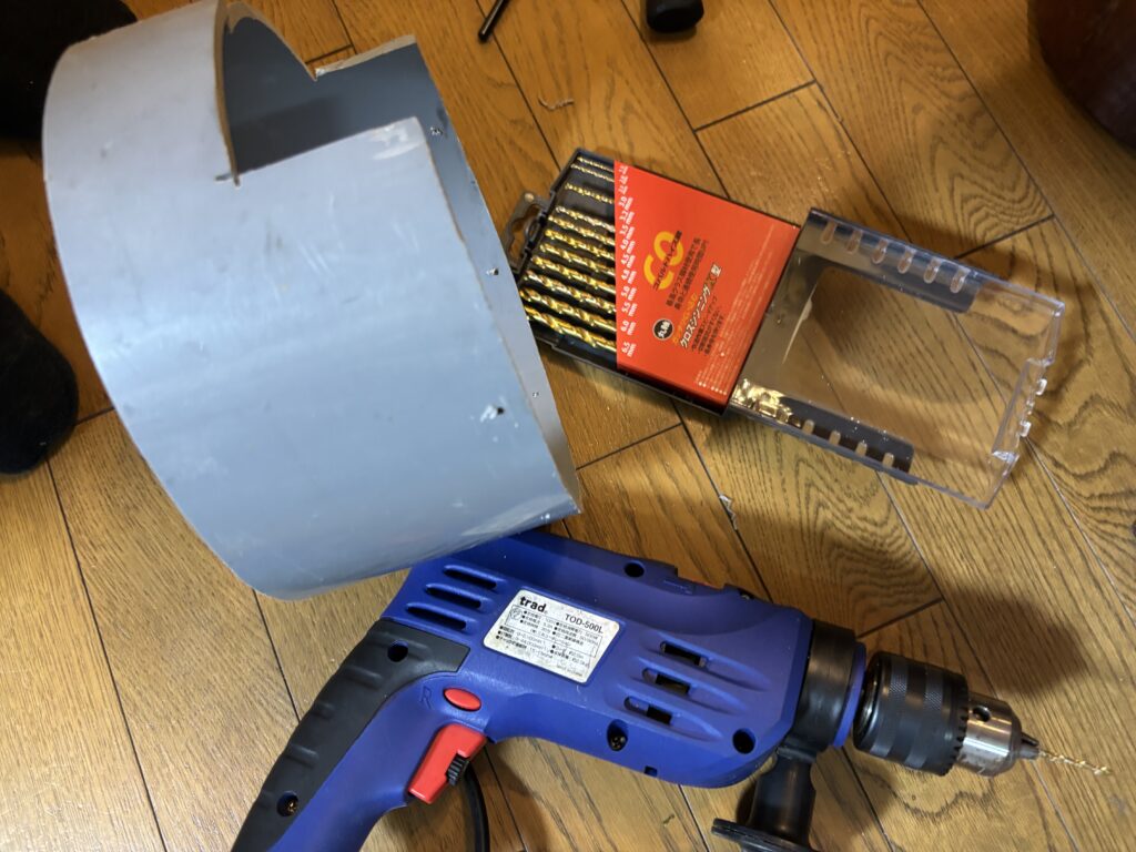 材料は知り合いに貰った塩ビ管と子供たちの図工で使った彫刻刀の版画の板。
