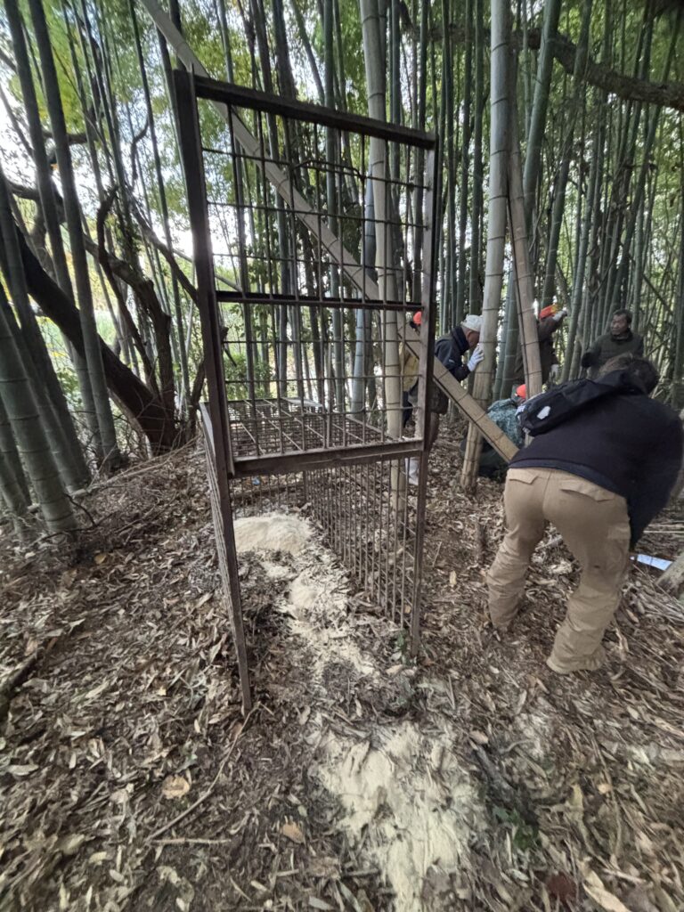 見切りから始まり獣道の見方やイノシシの動きの予測をたてて罠を仕掛ける場所を決めていきます。
