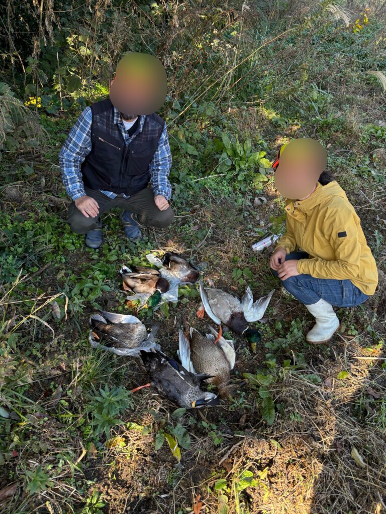 第一回目の座学の後、第二回目の鴨猟では沢山のマガモとカルガモを撃ち落とすことが出来ました。