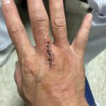 麻酔の後に縫ってもらいましたが濡らしては絶対にダメという事で皿洗いやお風呂など非常に不便しております。