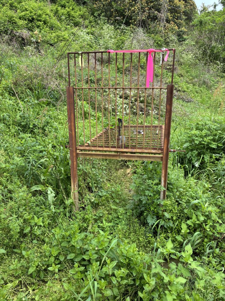 先日、箱罠の見回りを行っていたところ旧式の箱罠の周りが草が生えすぎていたのでスコップで草を掘り起こし、箱罠の管理を行っていたところ手の甲を箱罠の横ストッパーで切り裂きました。